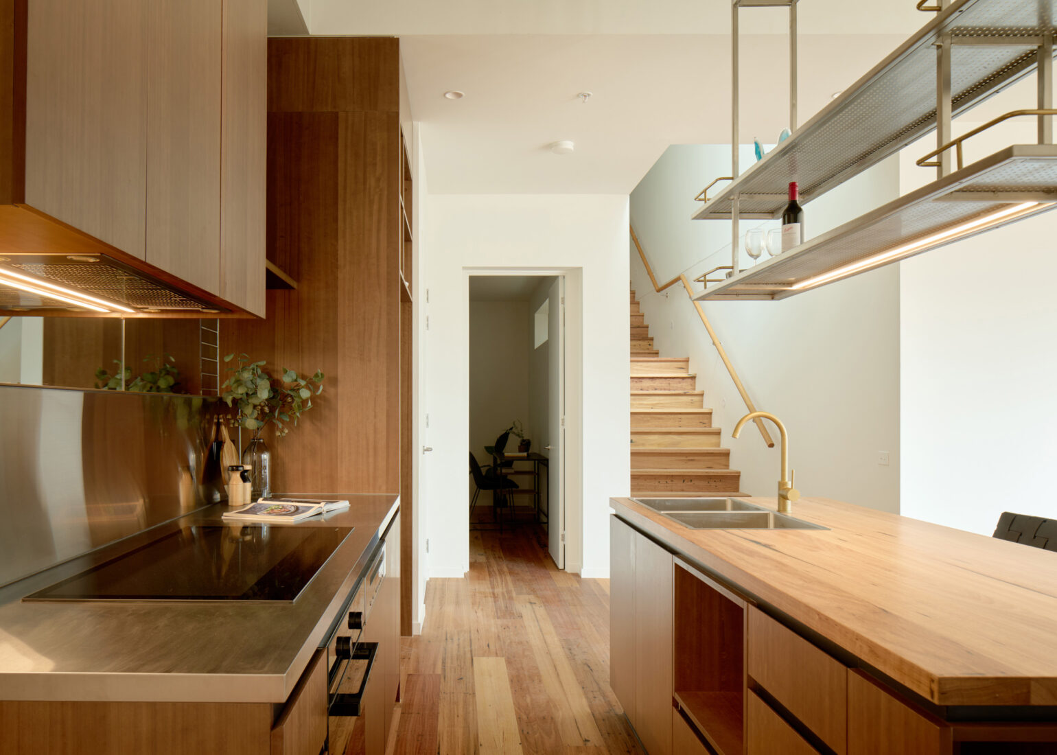 The buildings contain a mix of apartments, split level homes and creek fronting homes, from one to four bedrooms. Each has access to a shared rooftop garden with tree-top views. They feature natural light, carefully resolved interiors and a focus on sustainable living. These are homes designed for people to connect with nature and be part of a lively inner-city community.